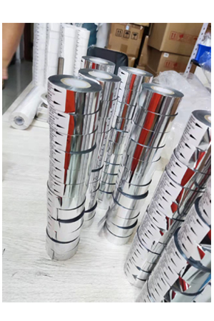 热打码色带是色带打码机的打印耗材,在产品软包装膜上打印生产日期、批号及必要的文字标注。它具有使用方便,字迹清晰,不易脱落、快干等,广泛应用于制药、食品、包装等行业,适用于pe、pet、pobb、纸张、皮革等软包装,具有抗摩擦、高度分离和防粘连性能,转印过程中墨层对基材无粘连。